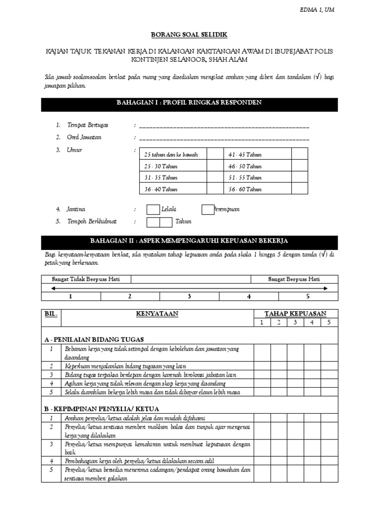 Contoh Borang Kaji Selidik Kajian Tekanan Pdf